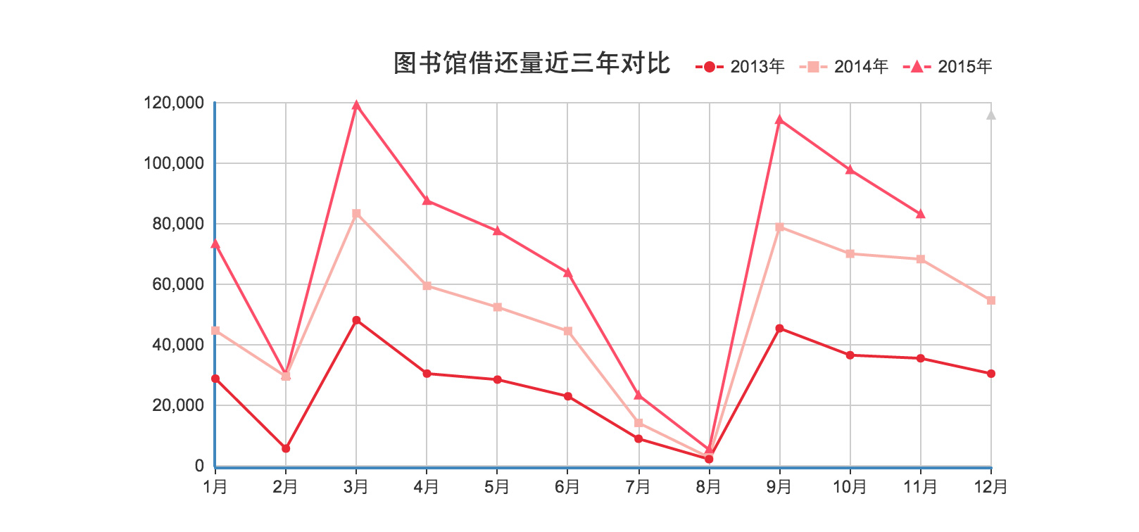 系統采用B/S架構模式,可通過(guò)電腦WEB端查詢(xún)相關(guān)系統使用報表、也可在移動(dòng)設備上登錄系統平臺,所有系統使用數據均在同一頁(yè)面進(jìn)行圖形展示,圖書(shū)館領(lǐng)導無(wú)論是在館或出差,隨時(shí)隨地均能了解圖書(shū)館各業(yè)務(wù)系統的實(shí)時(shí)使用情況。讀者也可以全方位的了解自己在圖書(shū)館內所有活動(dòng)的數據。